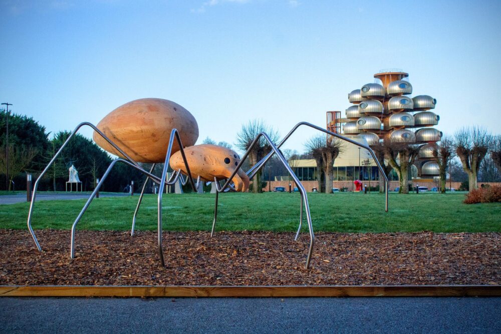 La multitude (environ 200 araignées et une fourmilière géante) et le format monumental de ces sculptures modifient la perception de notre rapport aux insectes et engagent la réflexion quant à notre position d’espèce auto-proclamée supérieure. Le monde des insectes, captivant par son intelligence et son organisation, est en équilibre fragile et peut s’effondrer si l’on n’y prend garde. Il m’importe de mettre en lumière ici toute la poésie de cet univers et l’importance de le protéger.